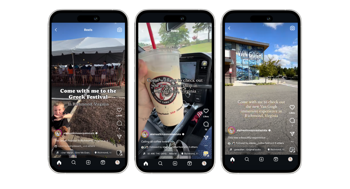 Elaina consistently posts local-focused reels. Not only do these reels help expand her reach by attracting viewers who are curious about the area, but they also position her as a trusted local expert. When people see her content, they recognize her as someone who truly knows and loves the city—making them more likely to follow, engage, and reach out when they need real estate help.