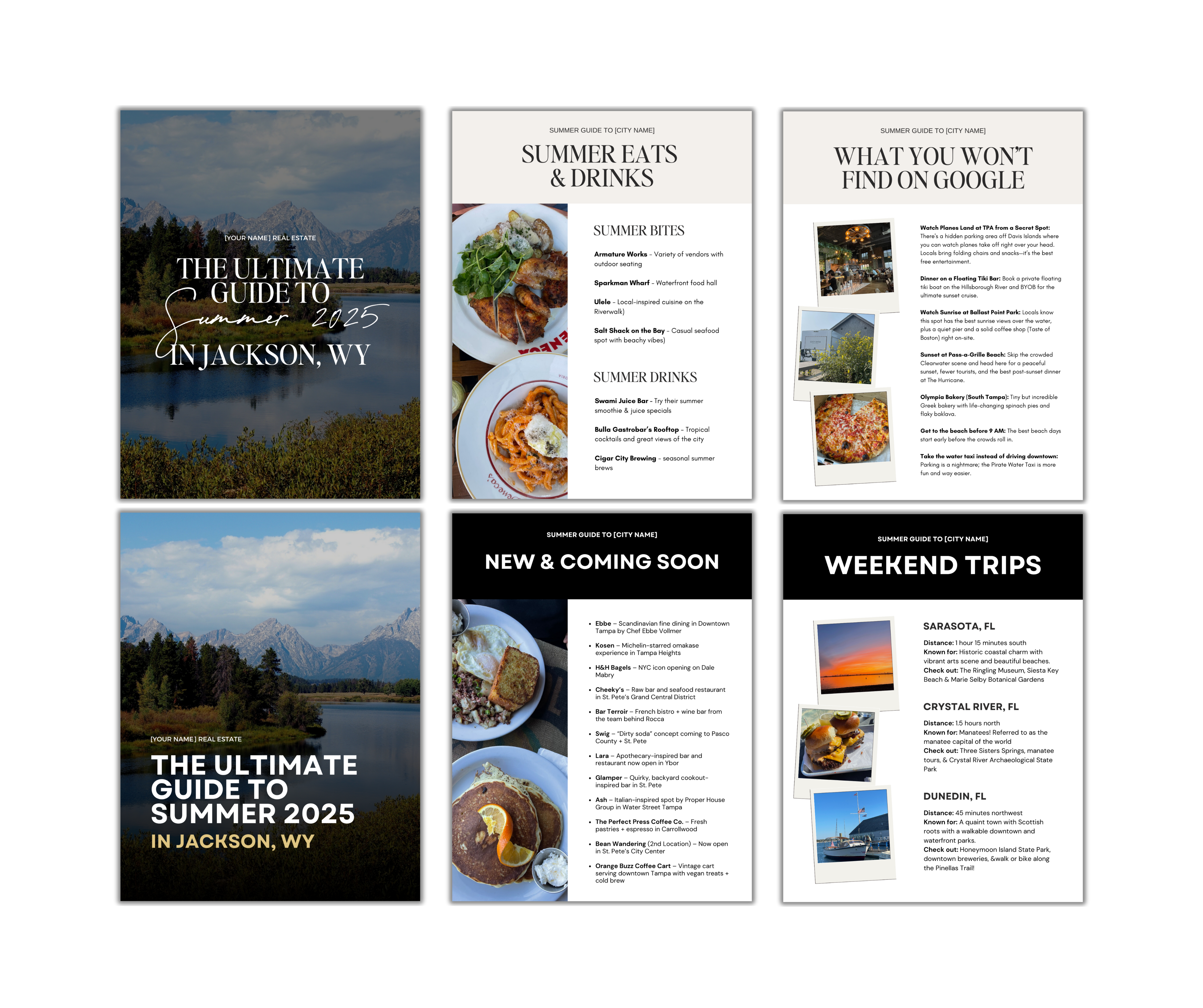 Seasonal guides are fun, hyper-relevant, and highly shareable. Whether it's a “Summer in [City]” guide or a “Holiday Bucket List,” these position you as the go-to local expert—not just a person who sells homes.