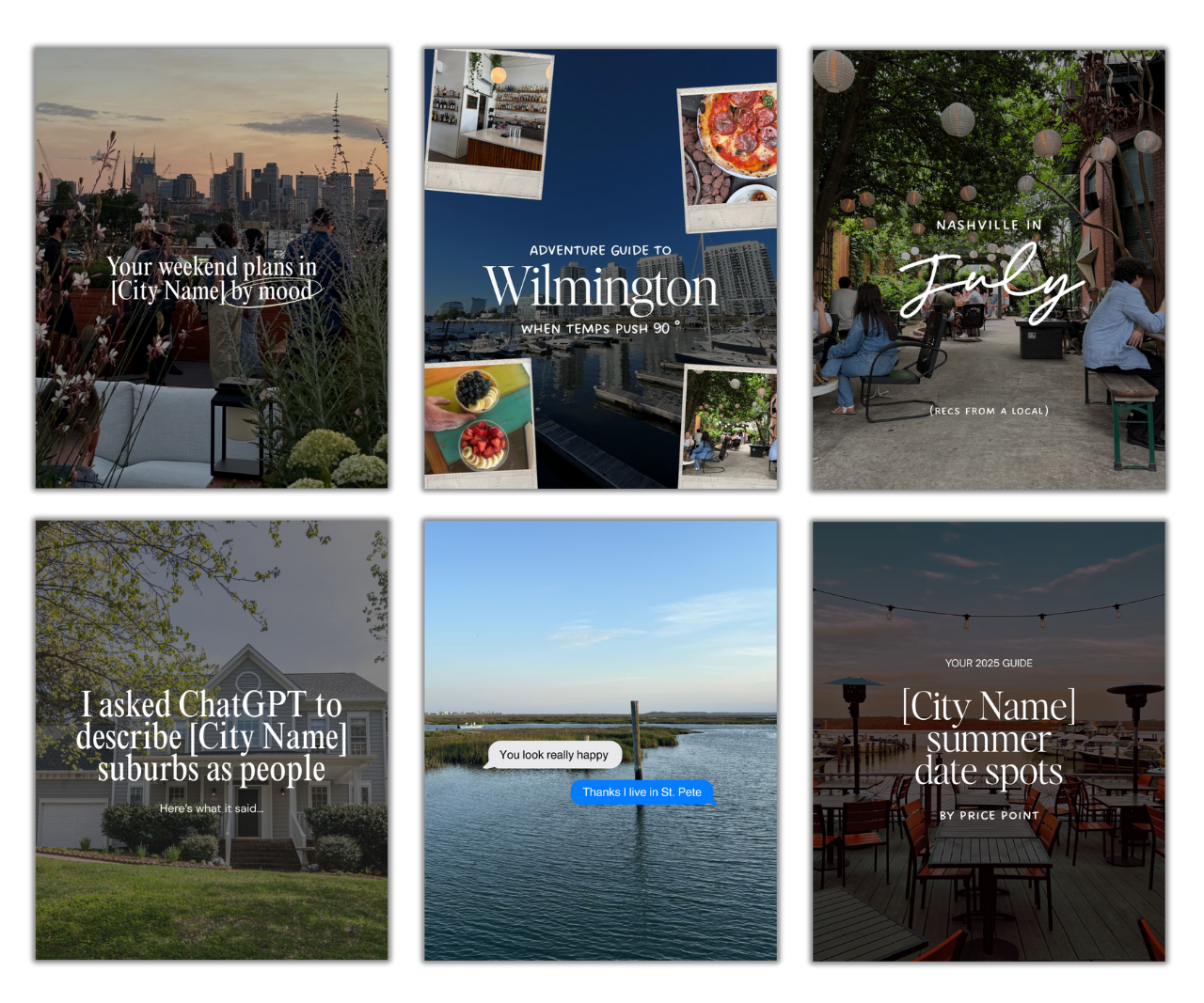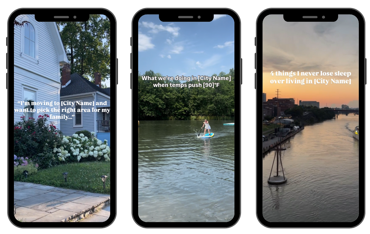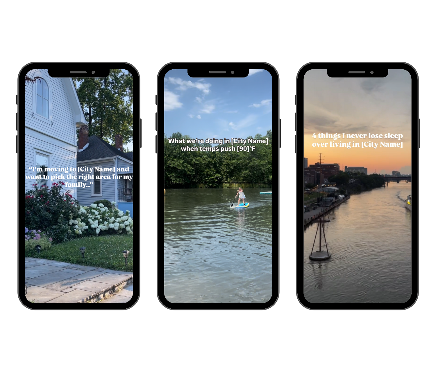 Capture the vibe of your city with short video clips of neighborhoods, coffee shops, parks, and hidden gems. Film these regularly while you’re out or set aside dedicated time to shoot around town. Local footage helps build connection and trust with your audience.