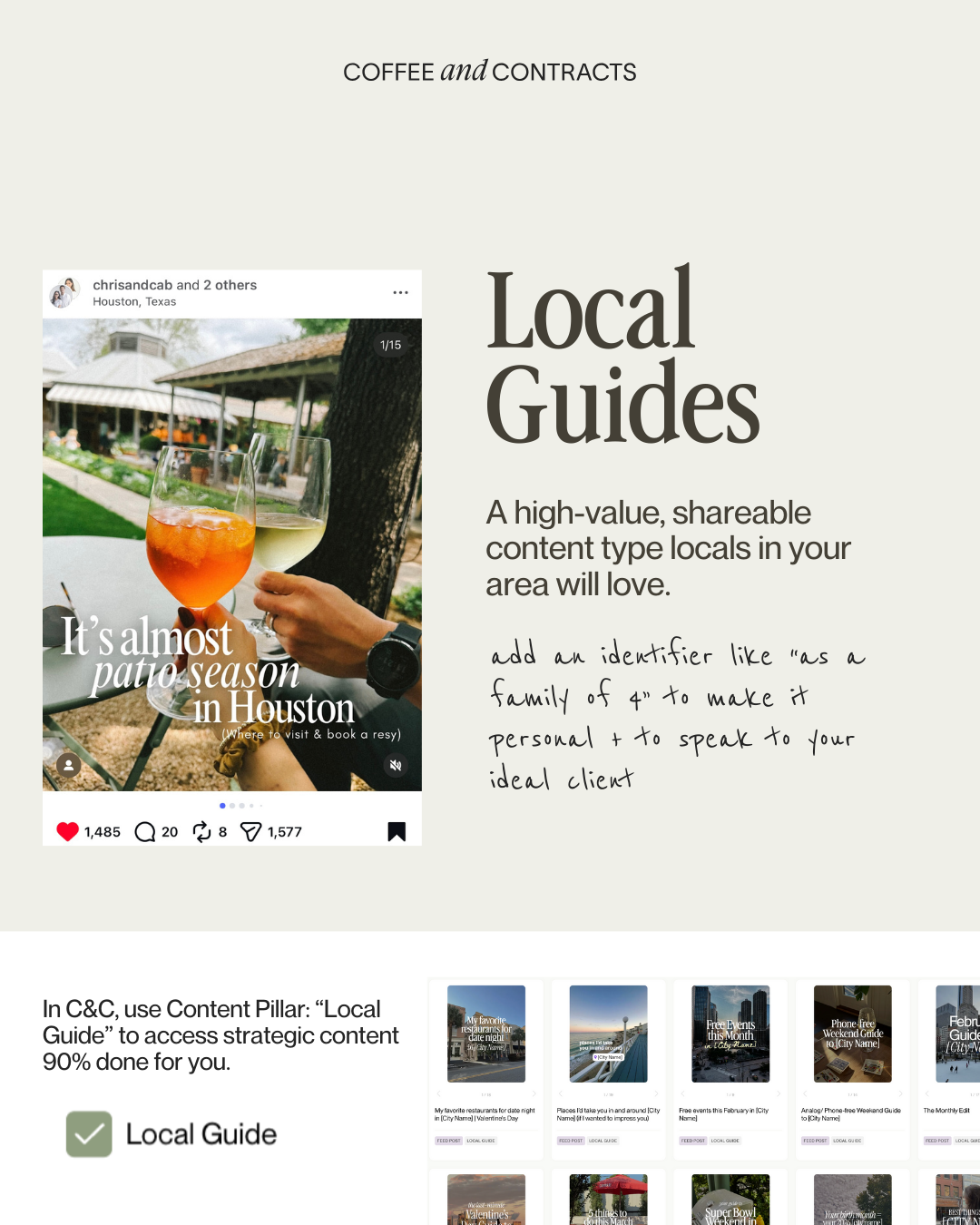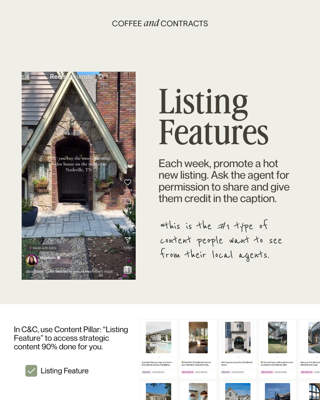 At Coffee & Contracts, we've built this exact system for over 16,000 agents. Every Monday, you get done-for-you content that fits into these pillars. No more guessing, no more creative burnout, no more "what should I post today?" spiraling.