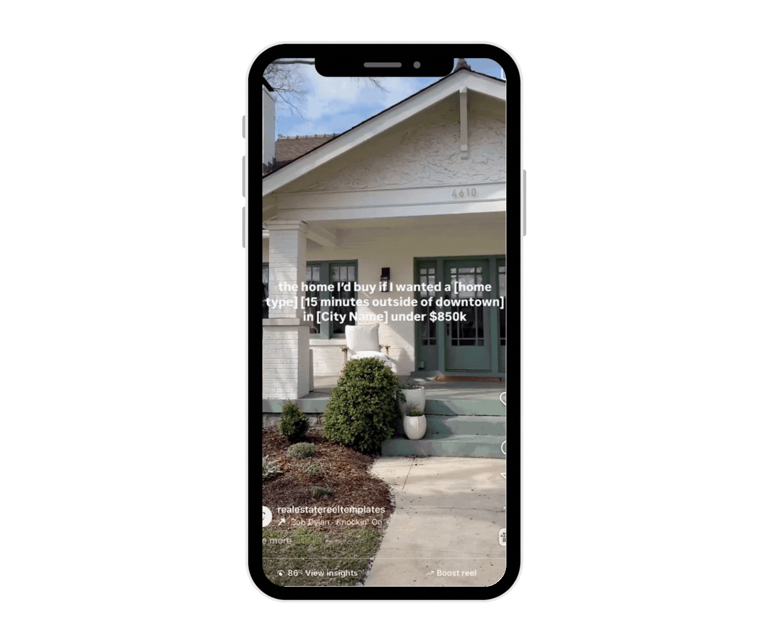 Listing feature reels are key to generating leads on Instagram. Use this template to showcase a new listing you have, or ask an agent if you can promote their listing and give them credit if it's allowed in your local area.