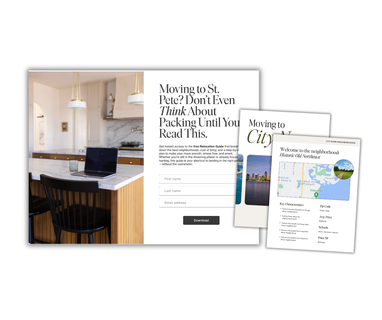In Coffee & Contracts, we give you the Relocation Guide, landing page, and follow up email templates to convert your audience into leads.